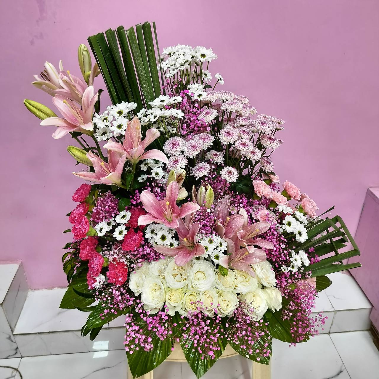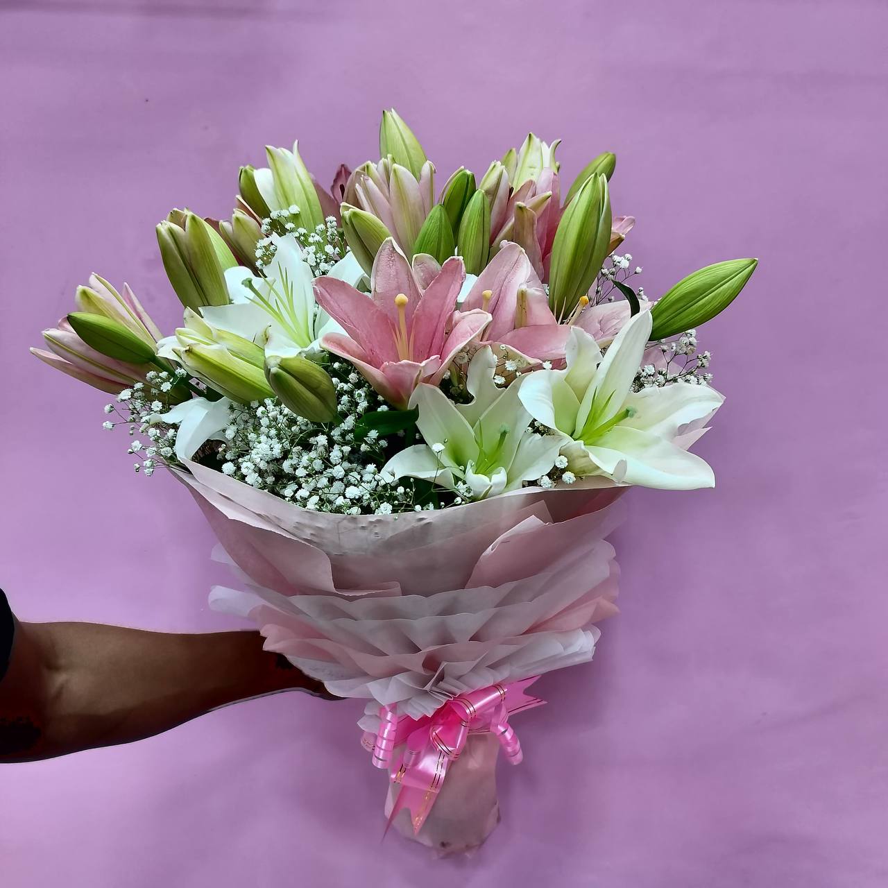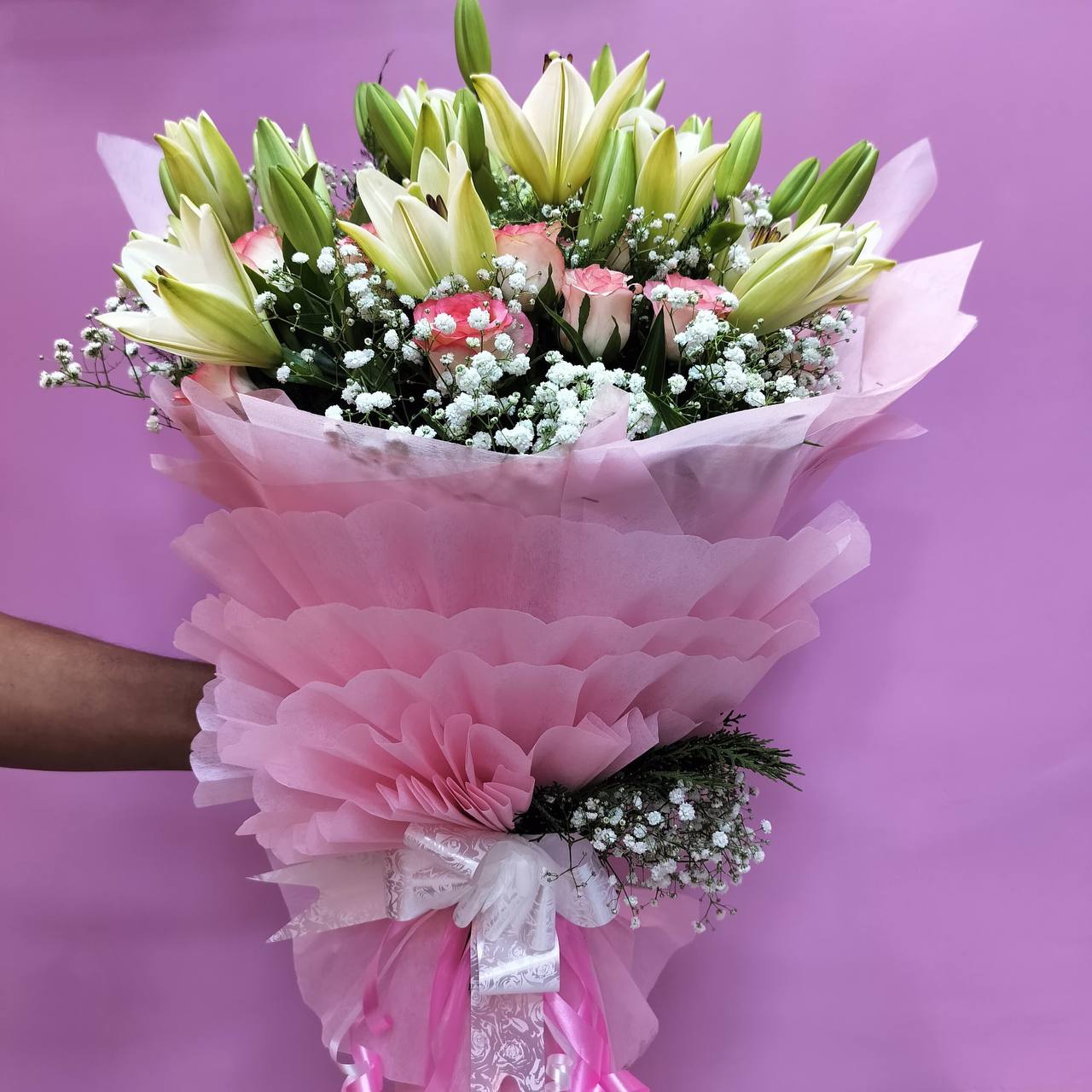 [GLF002]Pink & Oriental Lily Gypsophila Bouquet